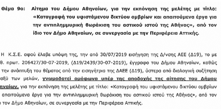 “Από το 2019, ο Δήμος Αθηναίων έχει πάρει έγκριση για την εκπόνηση μελέτης αντιπλημμυρικής θωράκισης του αστικού ιστού. Και δεν την έχει προχωρήσει. Ούτε…