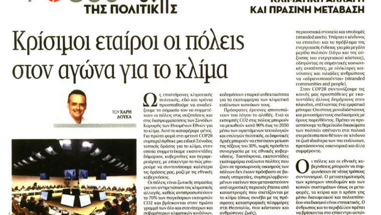 Άρθρο στην εφημερίδα “Τα Νέα” Ως επιστήμονες κλιματικής πολιτικής, εδώ και χρόνια προσπαθούμε να αναδείξουμε τη σημασία του να συμμετέχουν οι πόλεις στις συζητήσεις και…