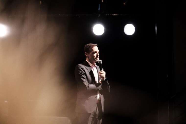 Ο Χάρης Δούκας στην εκδήλωση της «Ανοιχτής Σκηνής» του Θεάτρου Τέχνης Καρόλου Κουν με θέμα: «Κλιματική κρίση: η ζωή μας αλλάζει».