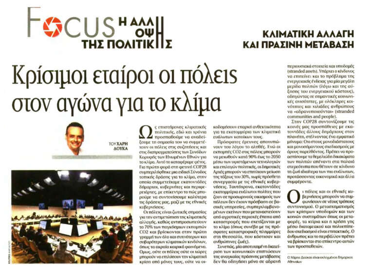 Χάρης Δούκας από την COP28: Η μάχη αντιμετώπισης των κοινωνικών ανισοτήτων πρέπει να δοθεί μαζί με τη μάχη για κλιματική δικαιοσύνη.
