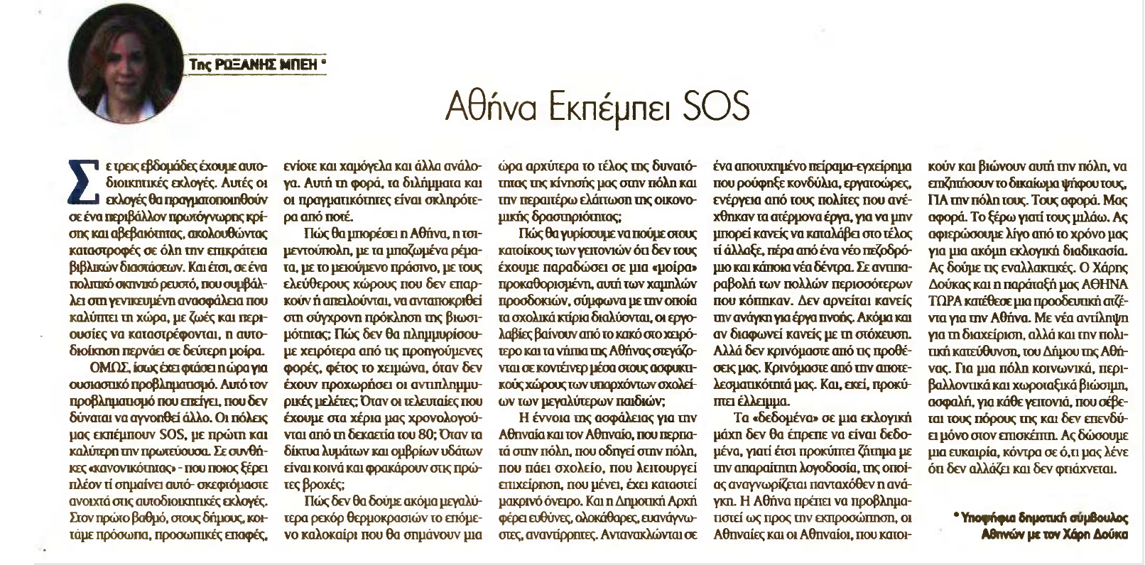 Άρθρα Ρωξάνη Μπέη: Αθήνα εκπέμπει SOS 17/09/2023 by ΑθήναΤΩΡΑ newsroom 0Comments Της Ρωξάνης Καραμπότσου Μπέη, Υποψήφιας Δημοτικής Σύμβουλου με τον συνδυασμό Αθήνα ΤΩΡΑ – Χάρης Δούκας Tags: Αθηνα ΤΩΡΑShare: twitterfacebookyoutube