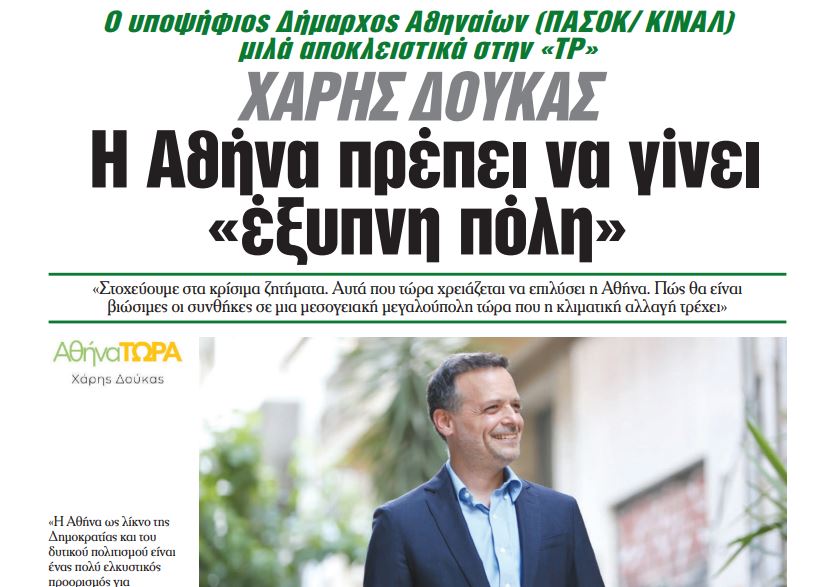 Το Σάββατο 5 Αυγούστου ο Χάρης Δούκας παραχώρησε συνέντευξη στην εφημερίδα Today Free Press “Η Αθήνα πρέπει να γίνει έξυπνη πόλη”